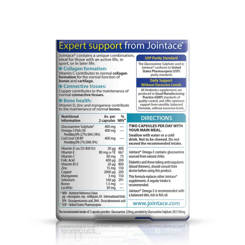 La santé du cartilage et des os est importante pour le bien-être à long terme. Jointace Omega-3 a été développé par les experts nutritionnels de Vitabiotics et fournit des combinaisons uniques d'oligo-éléments, de vitamines et de nutriments, idéales pour ceux qui ont une vie active, dans le sport ou plus tard dans la vie.