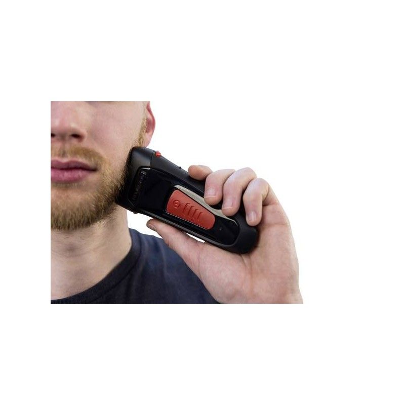 Conçu pour une utilisation sur peau sèche uniquement, sa taille compacte le rend facile à transporter et à utiliser, où que vous soyez (après une séance de sport, avant de sortir le soir, ou pendant vos déplacements). Branchez simplement le cordon, et c'est parti ! La tête de rasage est amovible, pour que vous puissiez l'entretenir et la nettoyer facilement, et que votre rasoir reste toujours bien entretenu.