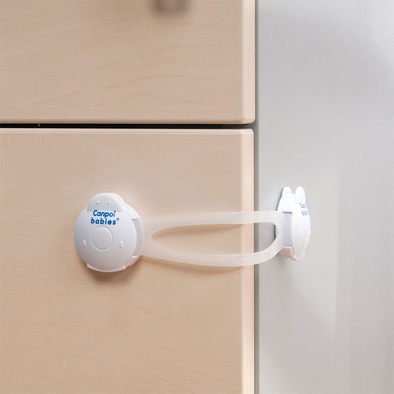 Serrure de sécurité polyvalente qui protège efficacement le contenu des armoires et des tiroirs des petits enfants et empêche les doigts de se coincer. Grâce au ruban adhésif, le produit peut être facilement installé sans outils. Convient à tout type de tiroirs ou d'armoires.