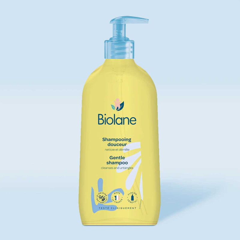 Le Shampooing Douceur Biolane, dune haute tolérance, aide à préserver l'équilibre naturel cutané du cuir chevelu.
