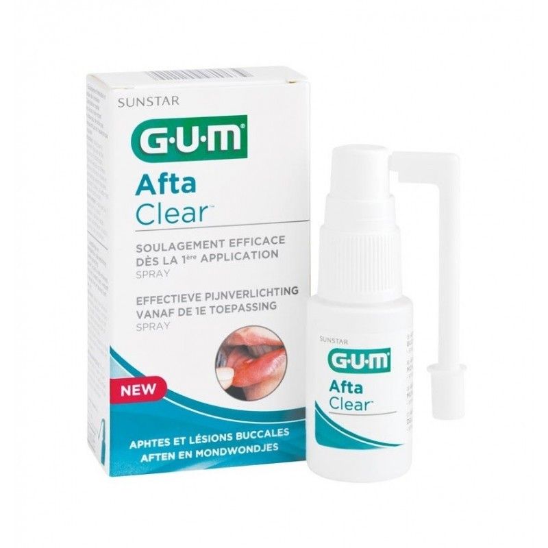 GUM Afta Clear Spray 15 ml est un traitement spécialement conçu pour soulager efficacement les aphtes et lésions buccales.