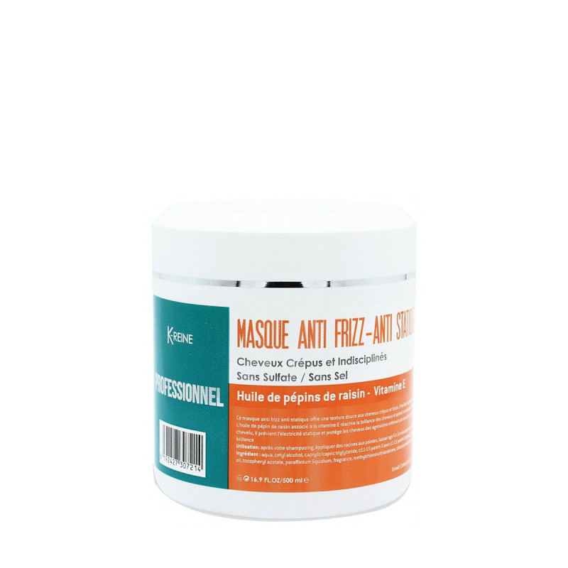 Ce masque anti frizz et anti statique de K-REINE offre une texture douce aux cheveux crépus et frisés. Il facilite le démêlage et transforme la chevelure en une matière fluide, souple et facile à coiffer. L'huile de pépin de raisin associé à la vitamine E réactive la brillance des cheveux et aplanit la surface de la fibre capillaire. Ce complexe contribue à l'hydratation et la protection du cuir chevelu, il prévient l'électricité statique et protège les cheveux des agressions extérieurs par une action antioxydante.
