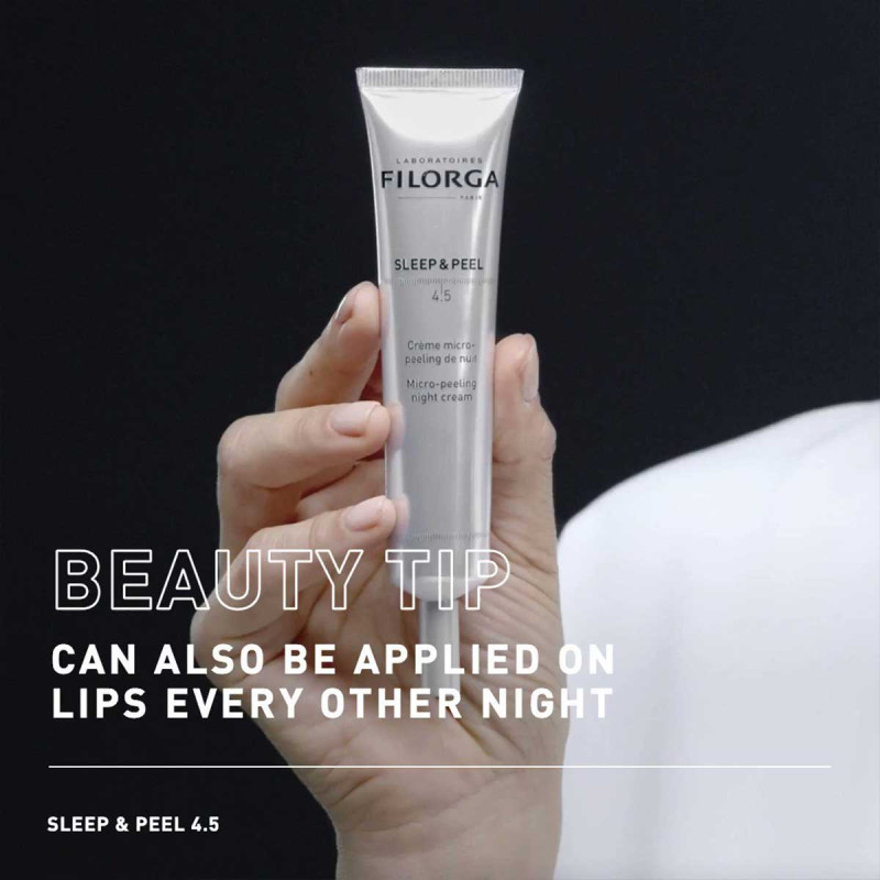 Sleep & Peel 4.5, la crème qui stimule le renouvellement cellulaire pendant la nuit pour un effet peau neuve au réveil. Inspirée des peelings professionnels, cette crème nuit intègre un complexe d’hydroxy-acides (AHA et BHA) concentré à 4,5% et associé à de l’algue brune apaisante pour une efficacité cosmétique resurfaçante en douceur. Résultat, la peau est lissée, le teint illuminé et le grain de peau affiné.