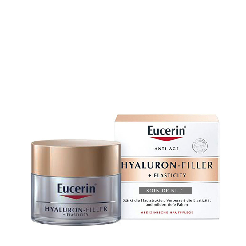 Le Soin de Nuit Hyaluron Filler +Elasticity d'Eucerin est une crème anti-âge qui comble les rides profondes, améliore l'élasticité de la peau et réduit les taches liées à l'âge.