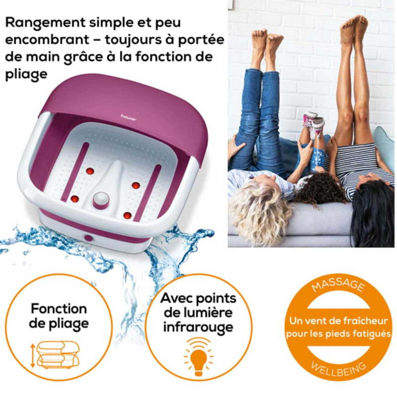 Bain bouillonnant pour les pieds pliable avec pédicure, mise à la température et massage par vibrations
