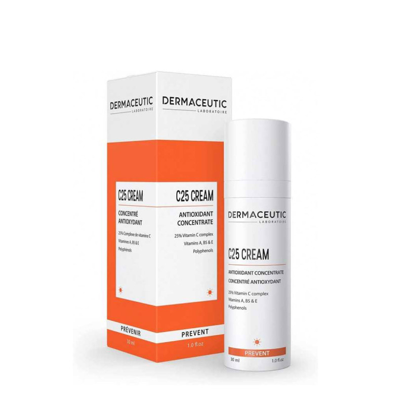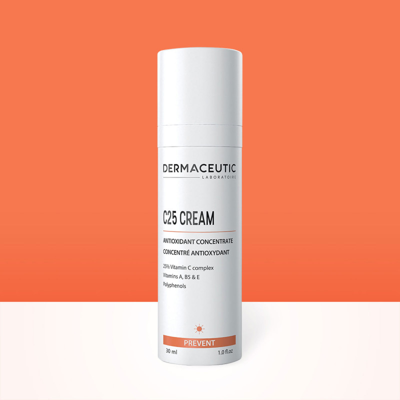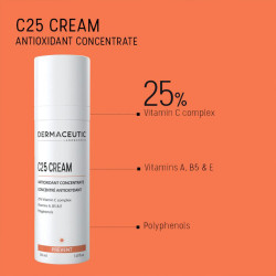 Cette crème C25 concentré antioxydant contient une formulation révolutionnaire d'antioxydants permettant une lutte efficace contre les radicaux libres et assurant la résistance aux rayons du soleil et à la pollution.