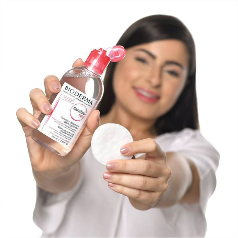 L'eau micellaire Sensibio H2O de Bioderma est dermatologique dédiée pour les peaux ultra-sensibles. Applicaion sur le visage et yeux elle nettoie, démaquille et apaise.