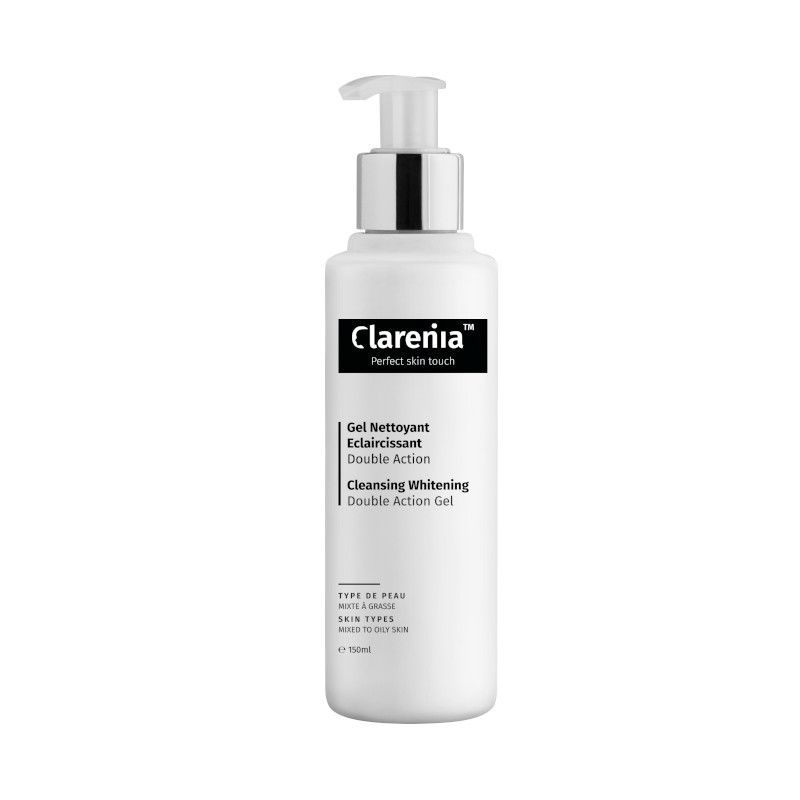 Clarenia Gel nettoyant éclaircissant double action PMG élimine les impuretés et l'excès de sébum et corrige les troubles de pigmentation.