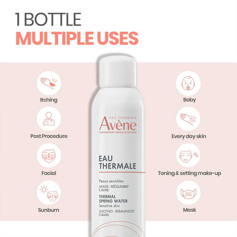 L’eau thermale Avène est utilisée en cas d’irritations cutanées, après un acte dermatologique superficiel, un coup de soleil ou tout simplement pour fixer le maquillage, toutes les peaux sensibles ont besoin de bien-être au quotidien.