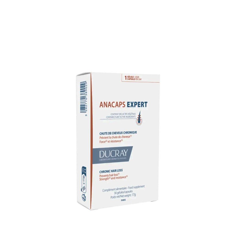 Le complément alimentaire Anacaps Expert qui contient des actifs végétaux répond aux besoins de la chute de cheveux chronique. Et couvre notamment 80% des besoins en Biotine (vitamine B8).
