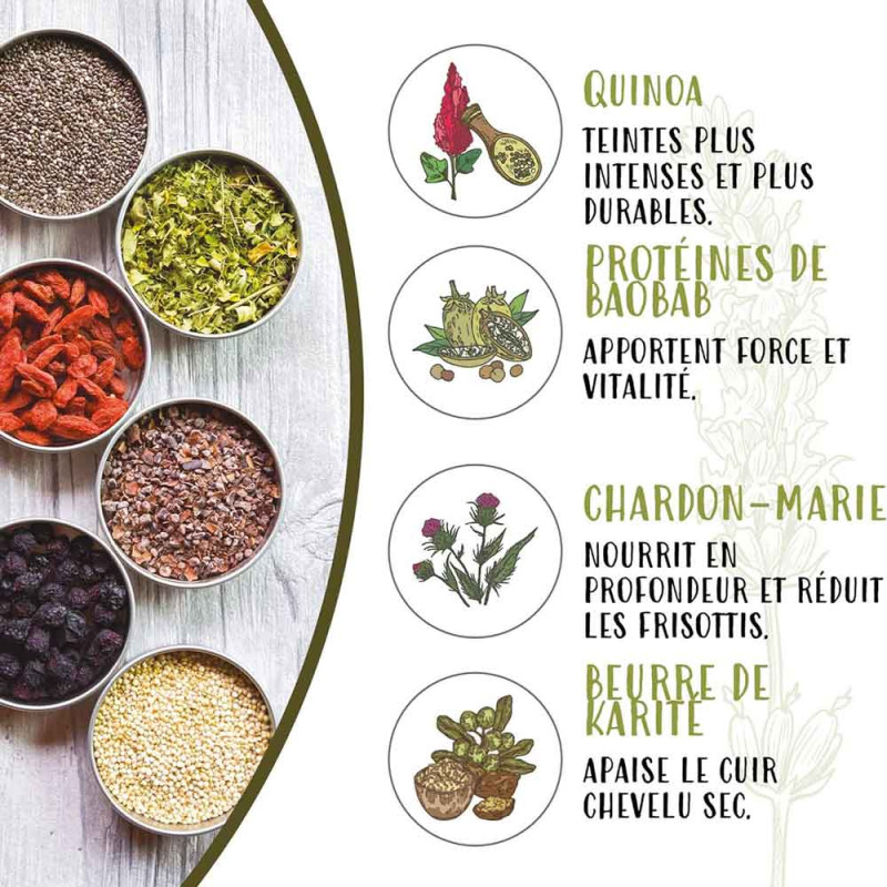 Offrez à vos cheveux colorés un soin profond et ciblé grâce au Masque Hair Food au Quinoa de Naturtint. Formulé avec 99 % d'ingrédients d'origine naturelle, ce masque nourrit, répare et prolonge l’éclat de la couleur. Son actif principal, le Quinoa, augmente la fixation des pigments pour une couleur plus intense et durable.