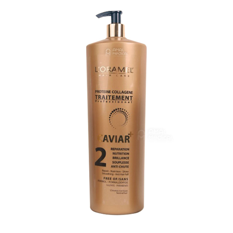 Protéine Collagène traitement Caviar+ est un soin complet, il lisse instantanément les cheveux pour une durée de 3 à 5 mois, aide à réparer et revitaliser les cheveux sans vie et les nourrit en profondeur tout en les hydratant intensément pour pour une tenue longue durée. Protéine collagène traitement Caviar+ élimine les frisottis, facilite le coiffage et réduit le temps de brushing pour une chevelure souple, raide, brillante et sublime.