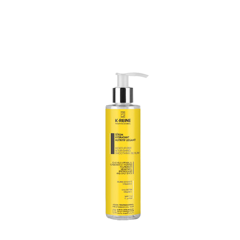 Ce sérum est conçu pour hydrater et nourrir les cheveux affaiblis et cassants. Enrichi en beurre de karité et vitamine E, ce soin scelle et lisse les pointes fourchues. Facilite le démêlage et le coiffage en formant un film protecteur des cheveux agressés et endommagés par les coloration et les brushings à répétition. Rééquilibre le taux d'hydratation et apporte douceur, souplesse et brillance.