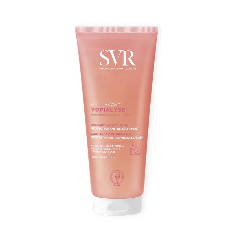 Topialyse Gel Lavant de SVR respecte le film hydrolipidique de la peau et aide à réduire les sensations de tiraillements et d’inconfort pour une peau adoucie et un confort long duré. Sa formule douce sans savon au pH physiologique est enrichie en Omégas 3, 6, 9 pour apaiser durablement la peau. Ce gel restructure et restaure la barrière cutanée.