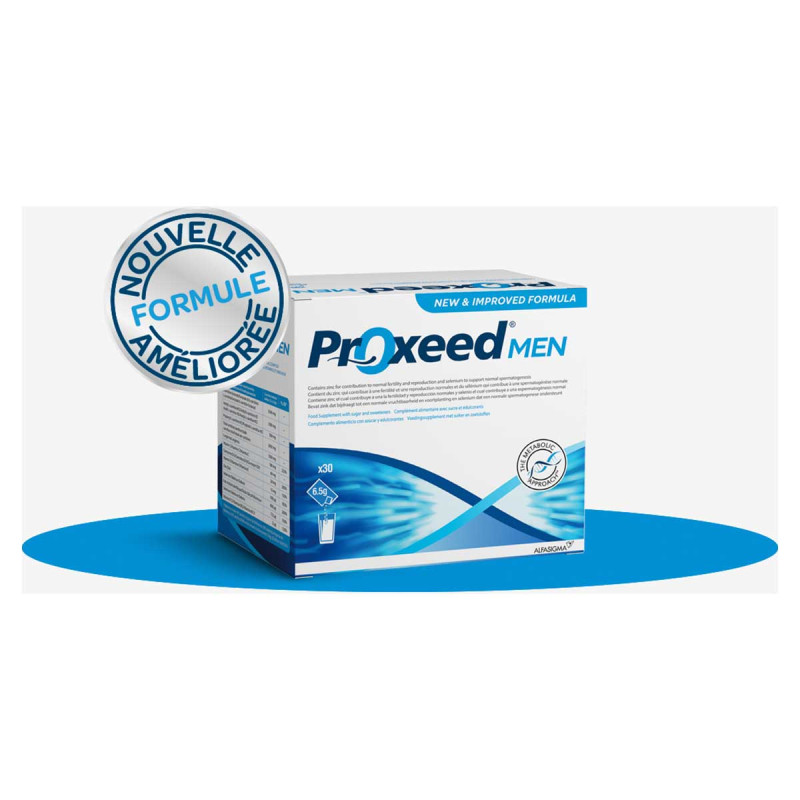 Proxeed Plus est un supplément nutritionnel fertilité, à l’efficacité cliniquement prouvée, contenant une association unique et brevetée de carnitines, de vitamines et de minéraux spécifiquement sélectionnés pour soutenir le développement sain des spermatozoïdes et maximiser les chances d'un homme de concevoir un enfant.
