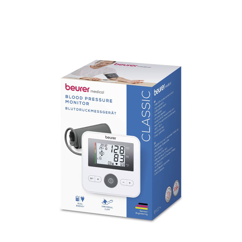 Le tensiomètre Beurer BM27+ est un dispositif médical conçu pour la mesure non invasive de la tension artérielle au niveau du bras. Fiable, simple d’utilisation, et riche en fonctionnalités, il convient à toute la famille. Grâce à son grand écran rétroéclairé et à son fonctionnement par un seul bouton, il garantit une prise de mesure rapide, claire et confortable.