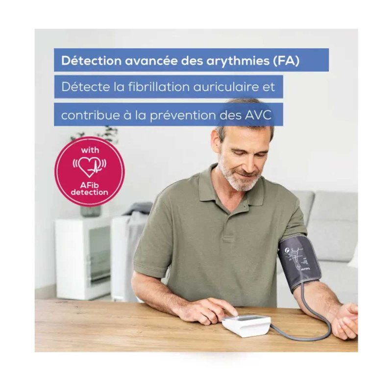 Le tensiomètre à brassard est un dispositif médical à détection avancée de l'arythmie. Il détecte la fibrillation auriculaire pour la prévention des AVC. Il permet une mesure entièrement automatique de la tension artérielle et du pouls au niveau du bras .Il est recommandée par les médecins pour des mesures encore plus précises.