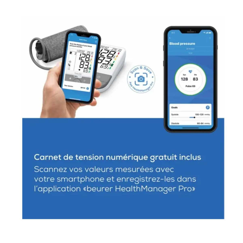 Numériser et sauvegarder : Documentation des valeurs de pression artérielle numériques dans l'application « beurer HealthManager Pro »