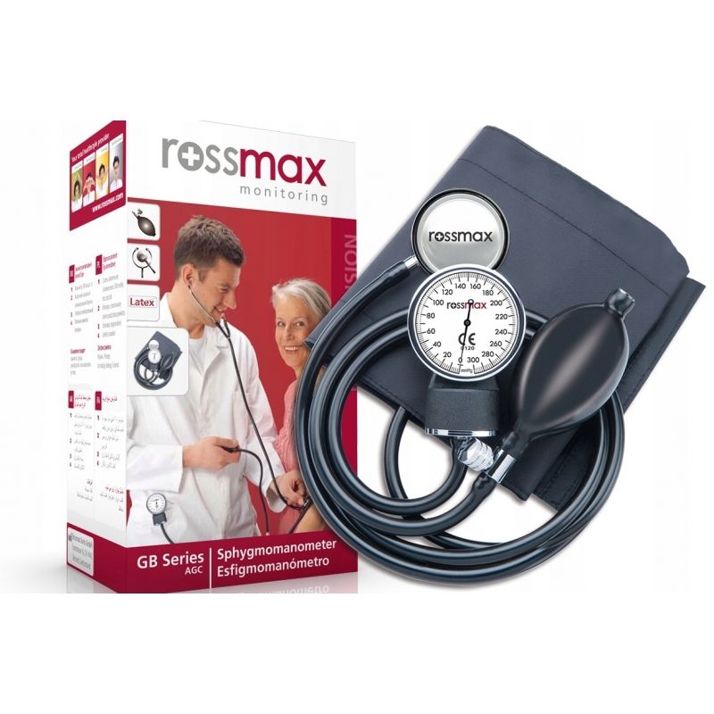 Rossmax GB102 Manual tensiomètre de bras tensiomètre analogique avec brassard Tensiomètre de bras analogique Ross max GB102 est une molette pour toutes les personnes qui savent apprécier la précision de la mesure en premier lieu.