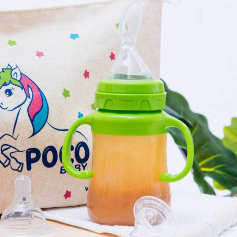 La cuillère biberon est compatible seulement avec les biberons silicone Pocobaby.