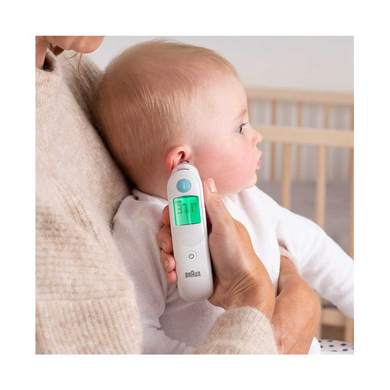 Thermomètre auriculaire infrarouge Braun IRT6515 ThermoScan 6 est un Thermomètre adapté pour toute la famille . Le Thermoscan 6 de chez Braun est le thermomètre le plus utilisé et le plus recommandé par les médecins. Doté d’un écran à code couleur et d’une sonde grand angle, ce thermomètre auriculaire infrarouge est adapté pour toute la famille, et permet de prendre sa température rapidement, de manière fiable.