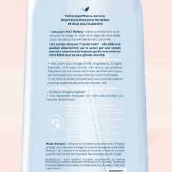 L'eau pure H2O Biolane nettoie parfaitement et en douceur le visage, le corps et le siège de votre bébé pour une peau propre et délicatement parfumée.