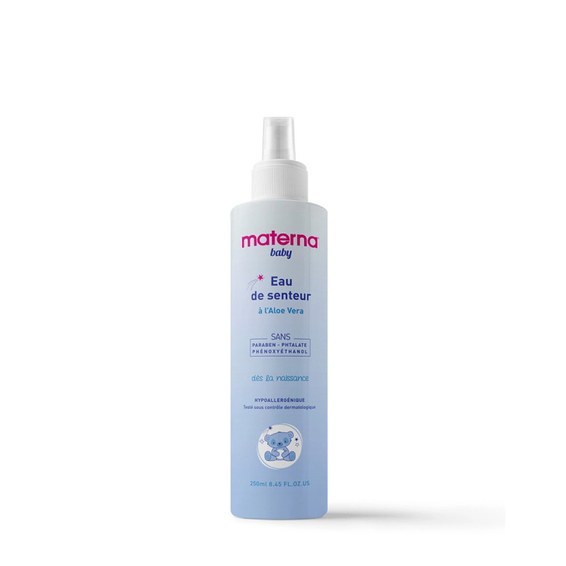 L' eau senteur Materna a été spécialement formulée pour la peau délicate des bébés.