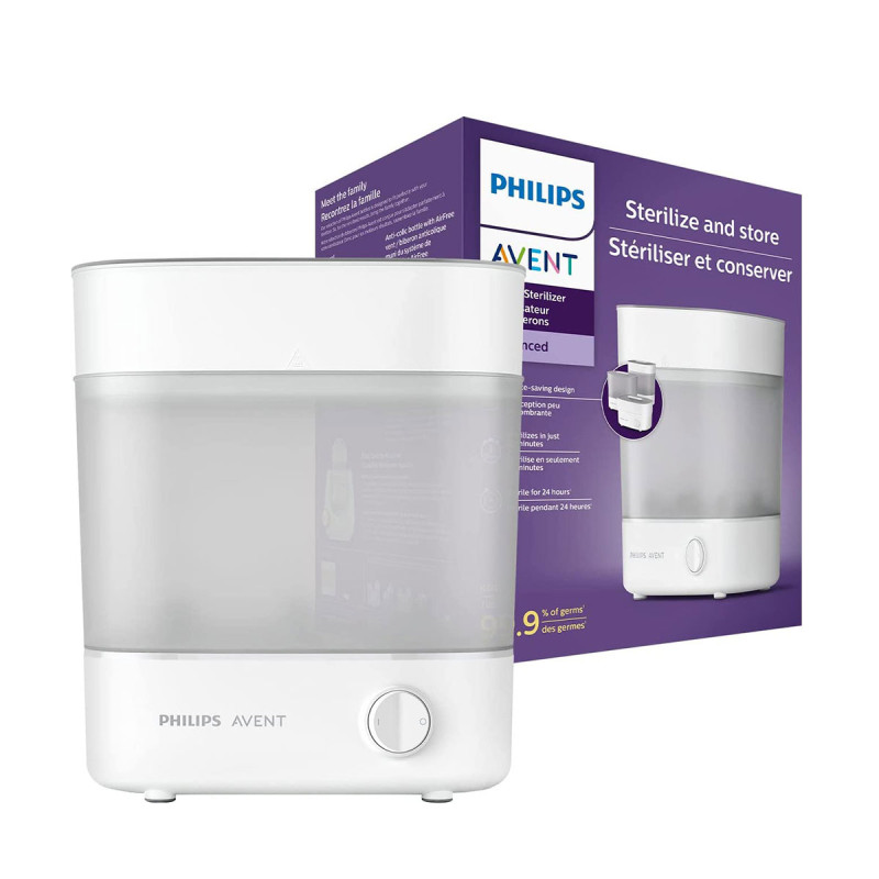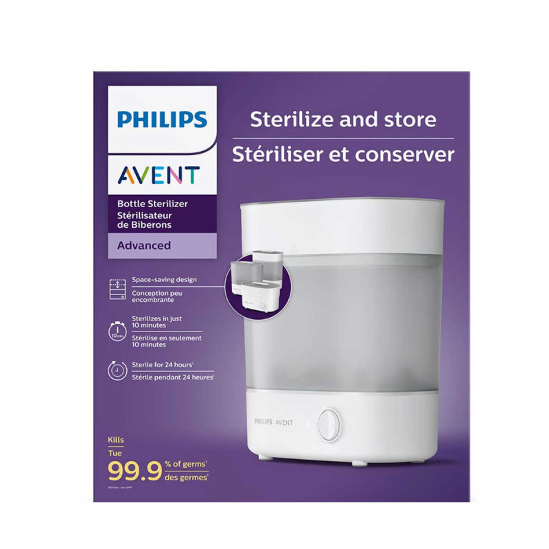 Stérilisez jusqu’à six biberons et leurs accessoires en 10 minutes seulement. Le stérilisateur Philips Avent avancé de biberons, mince mais spacieux, élimine 99,9 % des microbes rapidement et efficacement pour que vous ayez l’esprit tranquille à chaque tétée