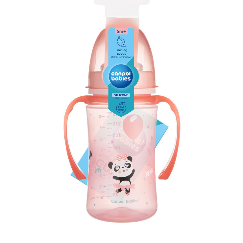 Le bec en silicone Canpol babies 56/600 s'adapte à la tasse. En retirant les poignées, vous pouvez facilement transformer la tasse en bouteille d'eau pour les enfants plus âgés.